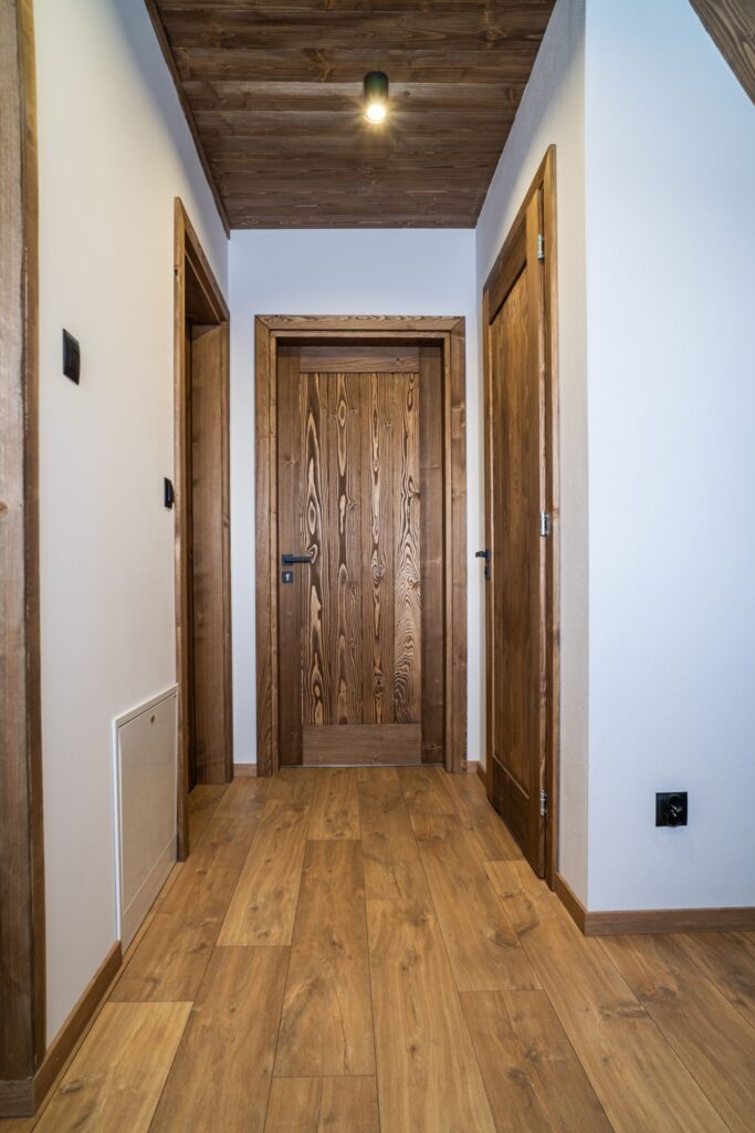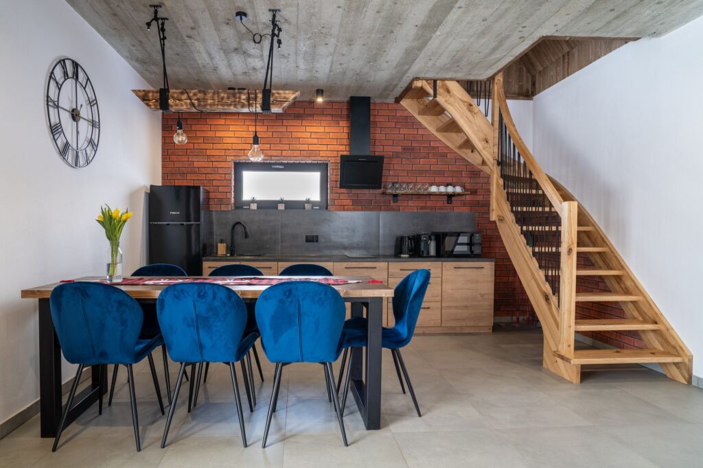 Sypialnie na Pietrze – Na piętrze znajdują się trzy urokliwe sypialnie. Dwie oferują komfortowe łóżka dwuosobowe, a trzecia jest idealna dla trzech osób. Każda sypialnia jest urządzona w nowoczesnym stylu, zapewniając przytulne schronienie po aktywnym dniu.