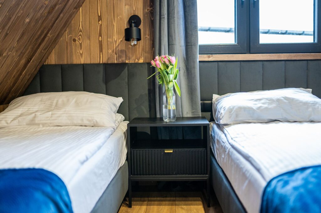 Na życzenie Gości istnieje możliwość dostawki. W sypialniach znajdują się łóżka hotelowe, umożliwiające dowolną konfigurację.