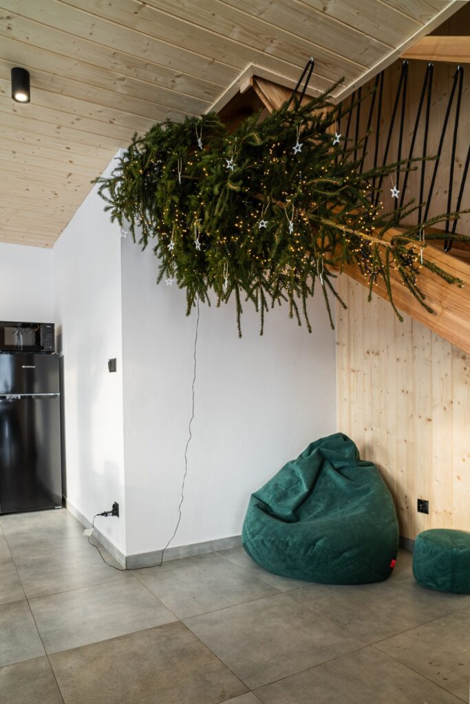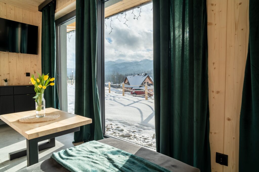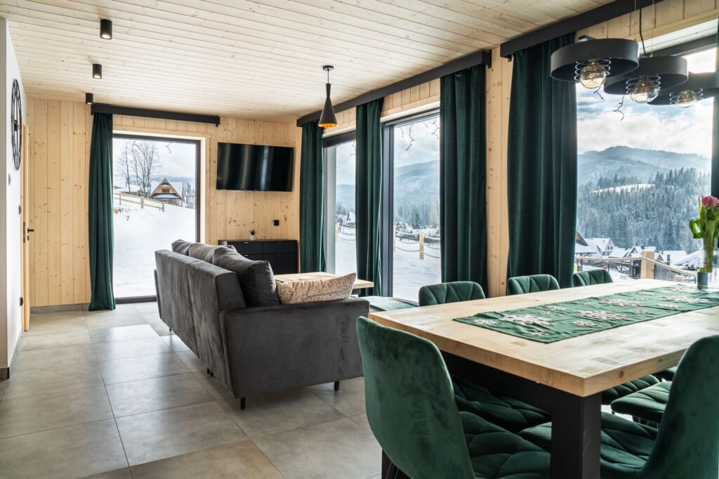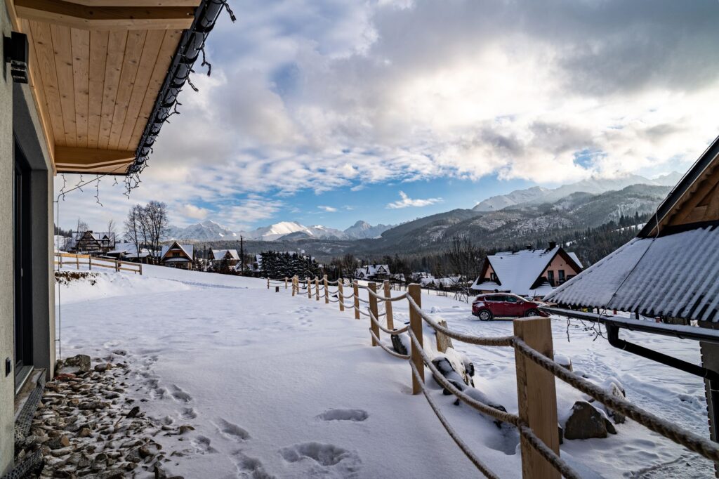 Taras: Taras w domku to prawdziwe okno na górskie pejzaże. O zachodzie słońca czy rannym poranku, z widokiem na ośnieżone szczyty, to miejsce, gdzie magia gór staje się częścią Waszego codziennego relaksu.