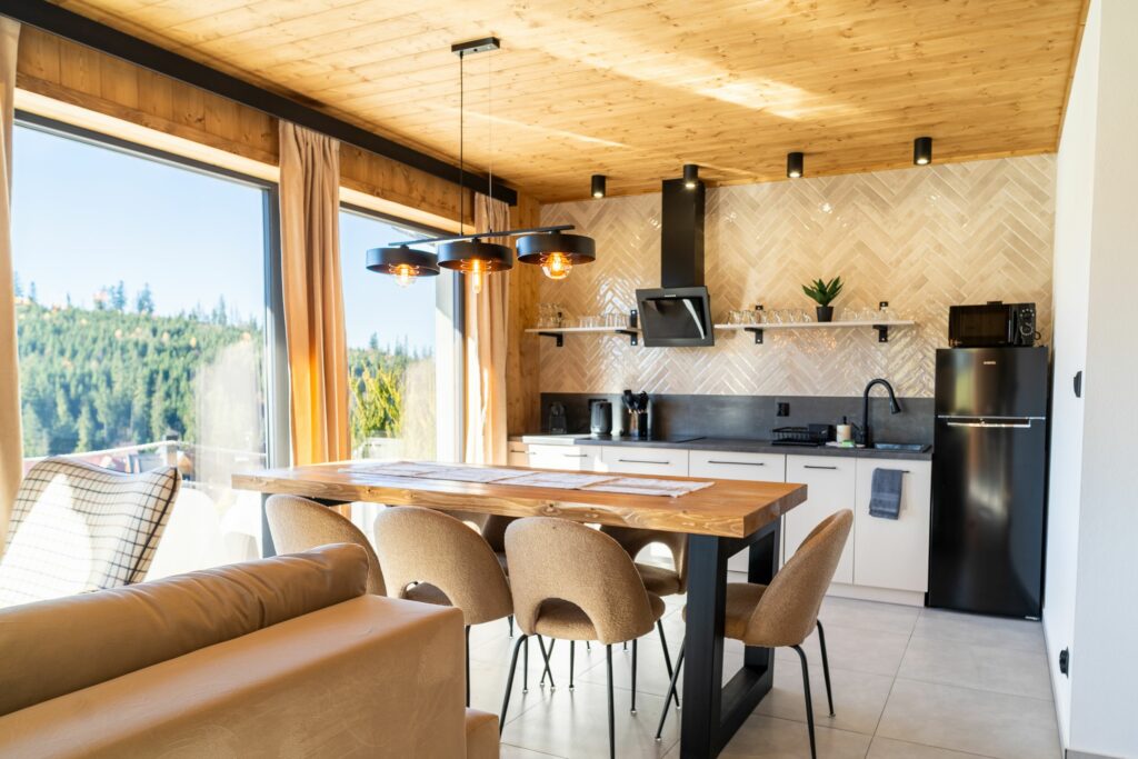 Nasze cztery górskie domki to połączenie komfortu, nowoczesności i tatrzańskiego klimatu. Każdy z nich oferuje przytulne sypialnie, w pełni wyposażoną kuchnię, eleganckie łazienki, przestronny salon oraz taras z przepięknym widokiem na Tatry. Idealne miejsce na rodzinny wypoczynek, romantyczny wyjazd lub relaks z przyjaciółmi.